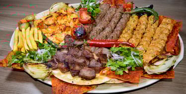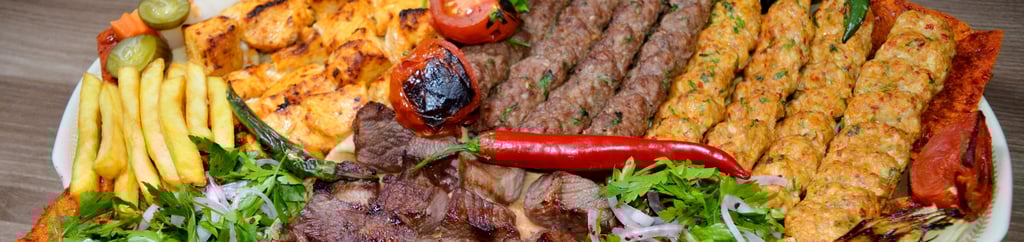 Pommes eller ris, vitlökskräm, coleslaw, picklade, grönsaker, sallad